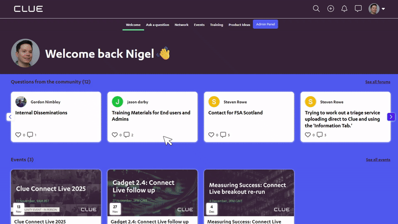 Clued‑Up sessions are regular, product‑focused events designed to help users get the most from Clue. These sessions bring customers together to share insights, ask questions, and explore how others are using the platform in practice.