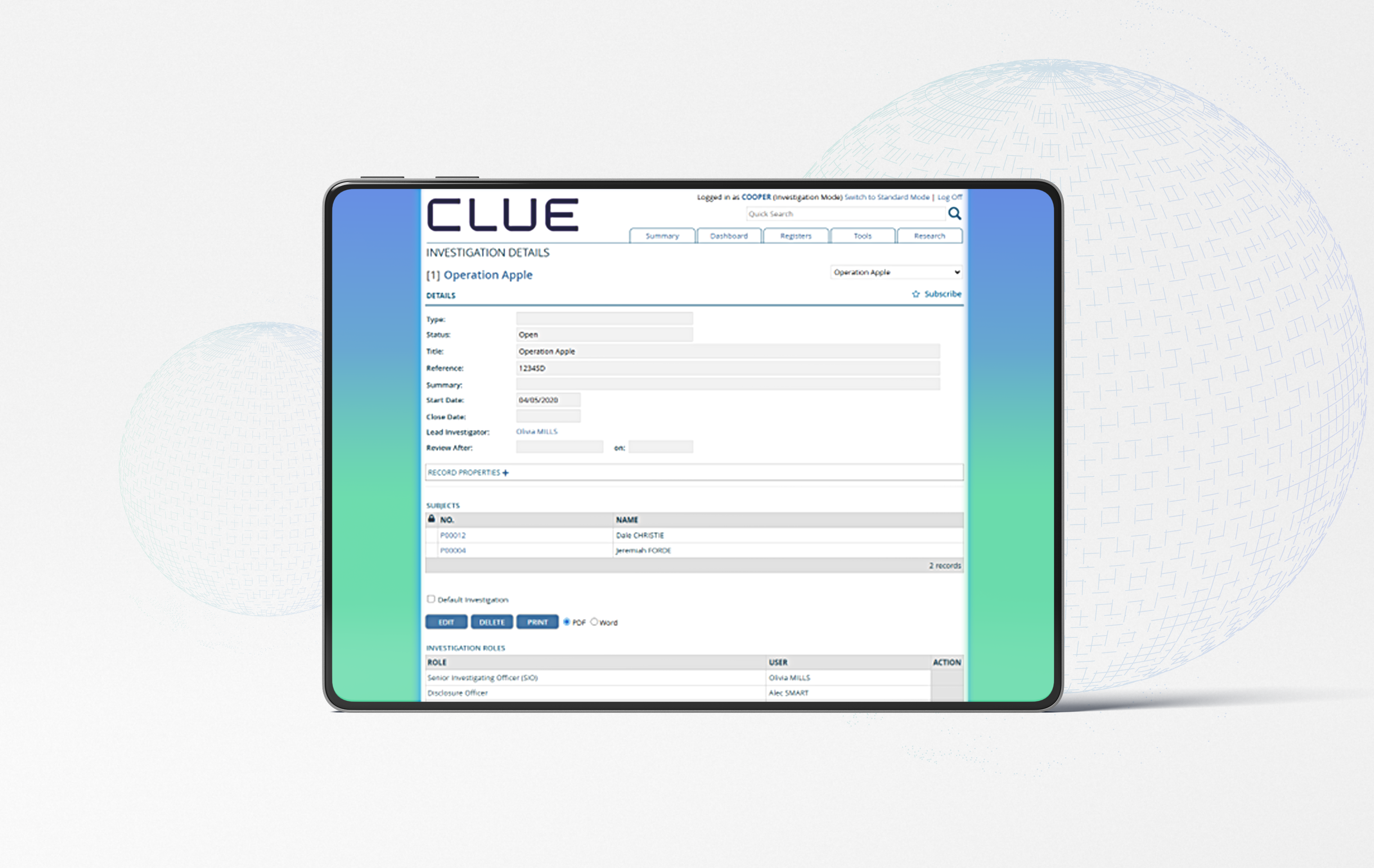 Securely manage evidence with a full chain of custody, track both active and excluded lines of enquiry, and link evidence to outcomes for complete investigative integrity.